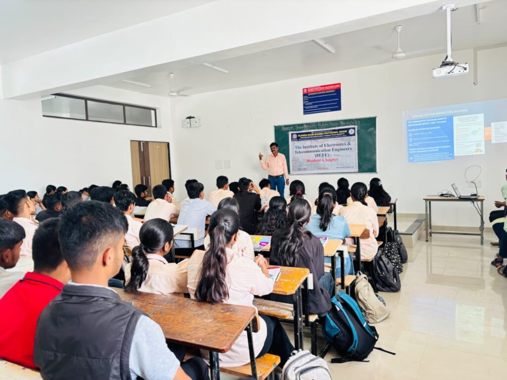 MVPS’s Rajarshi Shahu Maharaj Polytechnic Nashik Department of Electrical Engineering has organized a Expert lecture under IETE student chapter for Second Year and Third Year students of Electrical Engineering on “Solar PV installation and licensing” on 24th September 2025. The lecture was delivered by Mr. Bhagwat Nathu Sonone, Proprietor BNS Electical and Solar energy ( Retired Assistant Engineer MSEDCL). The Event was organized by Ms. P. A Shinde (HOD -EE) under the guidance of Prof. Prashant Patil (Principal)